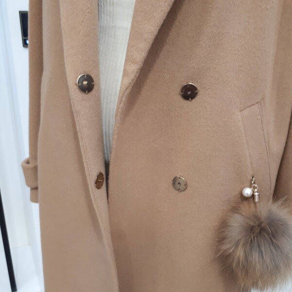 사랑스러운 털방울장식의 루즈핏모직코트입니다와이드한카라에 세련되면서도 내추럴한 분위기가느껴집니다어떤이너와도 잘어울려 코디하기좋아요