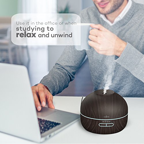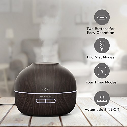 Anjou 350 ml Essential Oil Diffuser Wood Grain Aromatherapy Diffuser Ultra-Quiet Operation (BPA-free, Up to 8H Use, Waterless Auto Shut-Off)