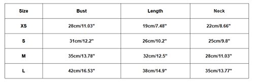 Size Details: ♥ Size _Bust _Length _Neck ♥ XXS = (Tag Size XS) _28 cm / 11.03 "_19 cm / 7.48" _22 cm / 8.66 " ♥ XS = (Tag Size S) _31 cm / 12.2 "_26 cm / 10.2" _25 cm / 9.8 " ♥ S = (Tag Size M) _35 cm / 13.78 "_32 cm / 12.5" _28 cm / 11.03 " ♥ M = (Tag Size L) _42 cm / 16.53 "_38 cm / 14.9" _35 cm / 13.77 " How to properly determine your dog's waist size: Measure completely around your dog's waist which is in front of the back legs. Be sure to include the penis. When measuring your dog use a cloth/flexible measuring tape, if one is not available, use a piece of string or twine and then measure that with a ruler,or measuring tape. Choose the corresponding size in inches. If in doubt or in between sizes, we recommend choosing the larger size. Please allow 2-3cm errors due to manual measurement Pictures are only samples for reference. Due to limitations in photography and the inevitable differences in monitor settings, the colors shown in the photograph may not correspond 100% to those in the items themselves. Thanks for your understanding^_^ 0