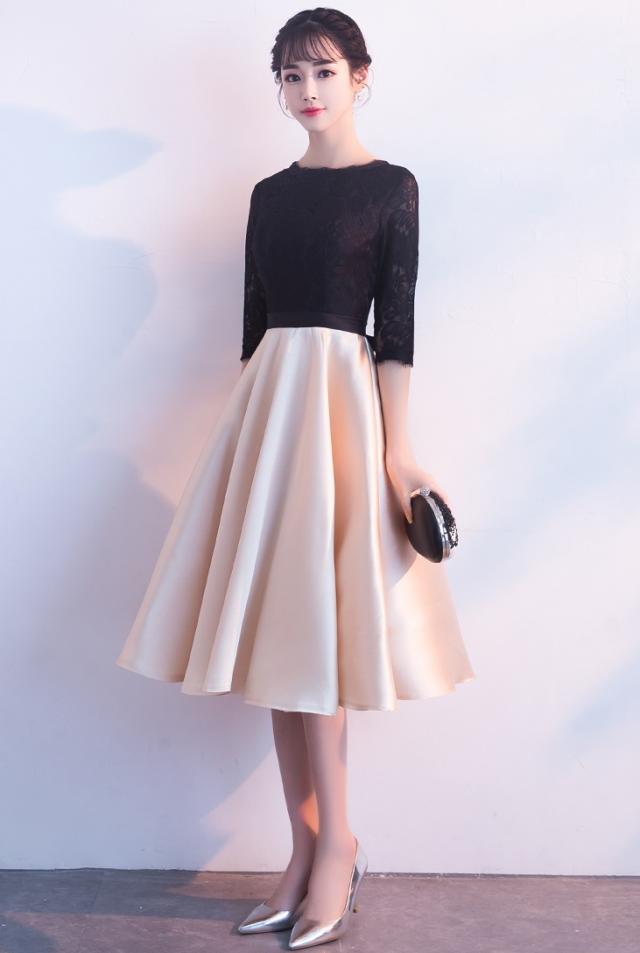 1枚で決まる!レースとサテンのウエスト切り替えドレスです。