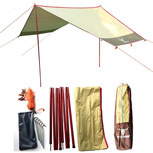 -. Brand : WintMing -. Color : Green -. EAN : 0603786520535 -. Feature : The material is rain-resistant and well stitched,and lots of accessories included:8 paracords,8 Aluminum stakes, / Size: 12x8.7 ft, big enough to keep the rains out of your hammock and keep your gear dry, you don't have to hang it diagonally to cover your entire hammock / This tarp has metal grommet rings around the edges, and a semi-reflective side of the material. It includes plenty of ropes for setup as well,you can use this as a canopy, shelter or roof for your hammock,also a pad for your picnic. / Four Season large tarps also provide good P.R.Ivacy for modesty when changing clothes, etc. There are some trade-offs with large tarps. Big tarps with extra tie-outs provide a lot of versatility and pitching options. And while you get extra coverage and protection from the elements, it can take some practice to master the pitching teqniques to get the most out of these shelters. / Hike Your Own Hike,Pick Your Own Pitch and Choose Your Own Tarp -. Label : WintMing -. Manufacturer : WintMing -. Model : WM-RAINFLY -. MPN : Tarp-210T -. PackageQuantity : 1 -. PartNumber : Tarp-210T -. ProductGroup : Home Improvement -. ProductTypeName : HARDWARE -. Publisher : WintMing -. Size : 11.8 ft -. Studio : WintMing -. Title : Outdoor Camping Hammock Tarp Lightweight Rainfly 12x8.7 Ft -. UPC : 603786520535