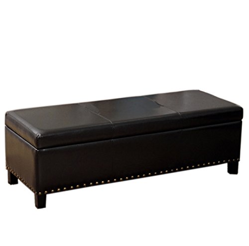-. Brand : Warehouse of Tiffany -. Feature : Dimensions: 50L x 18W x 17H in. / Oak wood frame / Flip-top lid reveals open storage / Black faux leather upholstery / Contemporary look with nailhead trim -. Label : Warehouse of Tiffany -. Manufacturer : Warehouse of Tiffany -. MPN : WT-W7077 NAIL BROWN -. PackageQuantity : 1 -. PartNumber : WT-W7077 NAIL BROWN -. ProductGroup : Furniture -. ProductTypeName : HOME_FURNITURE_AND_DECOR -. Publisher : Warehouse of Tiffany -. Studio : Warehouse of Tiffany -. Title : Warehouse of Tiffany Nail Design Storage Bench