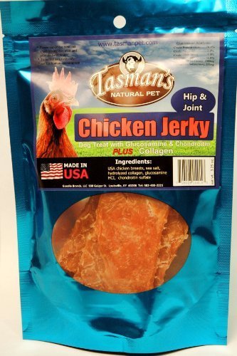-. Feature : Made in USA, Sourced in USA. 3.25 oz. / 1,500 mg/pkg of Collagen Added for Joint & Skin Health / Glucosamine 8,000 mg/kg (Min) & Chondroitin 3,000 mg/kg (Min) / No preservatives or Glycerin / Antibiotic Free Chicken Breasts