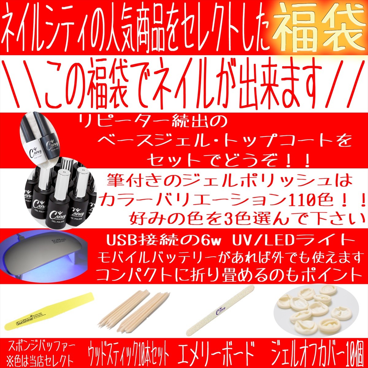 \\ネイルシティもやります//◎人気アイテムを厳選した新春福袋◎★価格によってバリエーションが異なる3種類をご用意しました★★商品によってカラー選択が可能なのも嬉しいですよね★インテリアカラージェル欠品中カラー1636欠品中のカラーを選択、選択商品が空欄の場合は当店にてオススメのカラーをお選びします。O訳あり理由Oコスト削減の為発送梱包が簡易となります。内容量が若干少ない場合がございますが、極端に少ないものは無いのでご安心ください。ラベル・カラーネーム変更の為品番によりラベルが異なります。画像を見る環境によって色合いが異なる事がございます。商品によっては成分やホログラムが沈殿している場合がございますが、よくかき混ぜてから使用して頂ければ問題はありません。