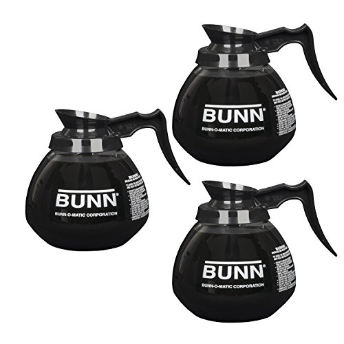 BUNN 42400.0103 12 Cup Commercial Glass Decanter with Handle (3 pack), Black