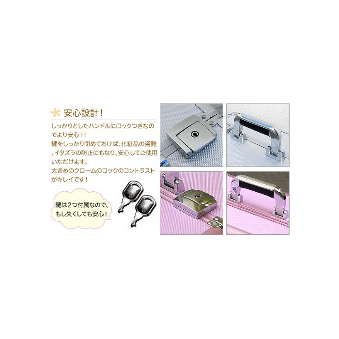 원본상품명: ottostyle.jp メイクボックス コスメボックス Lサイズ 【ピンク】 37×24.5×27.5cm ?音開き アルミ プロ仕? 鍵付き ツ?ルボックス 工具箱