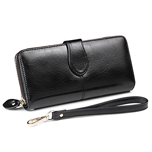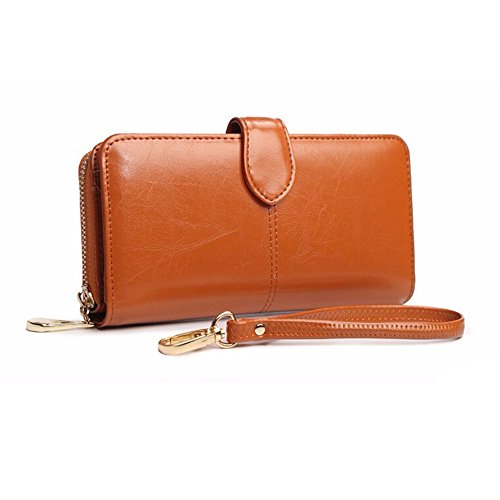 -. Title : Oil Wax Genuine Leather Wallets Women Handbag Large Zipper Coin Purse for Phone