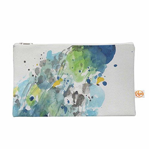 KESS InHouse Rebecca Bender "Abstract Watercolor Peacock" Blue Teal Everything Bag, 8.4" x 4" (RB3003AEP03)