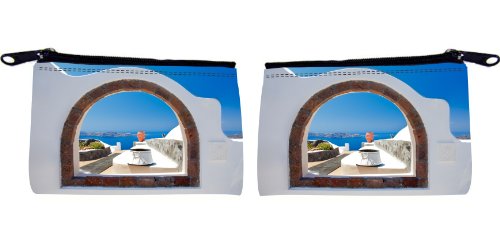 -. Title : Rikki Knight Greek White Washed Window To Paradise Design Scuba Foam Coin Purse