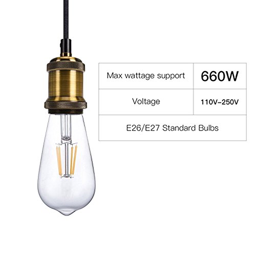 MAX WATTAGE: JACKYLED pendant light can support up to 660W, 110V-250V, it allows you to use any E26 E27 light bulb, not only Edison bulb, but also LED, CFL bulb can be used with JACKYLED mini pendant light. The socket is made of high quality aluminum that will not rust, long lifespan. Meet your need of different lighting effect. (bulb is not included)