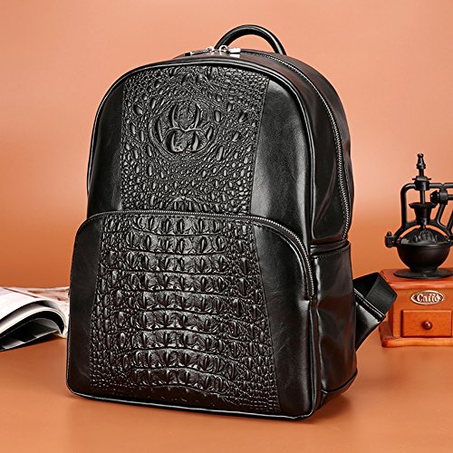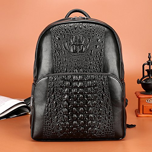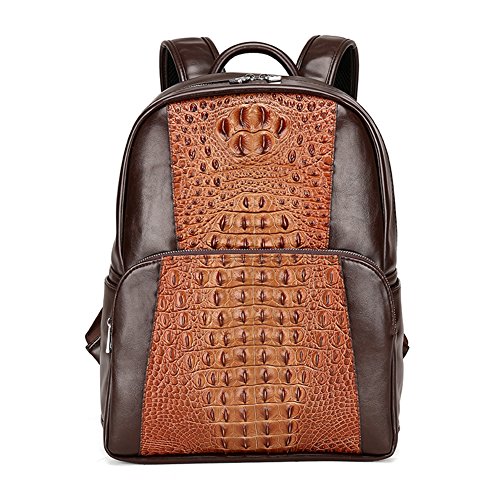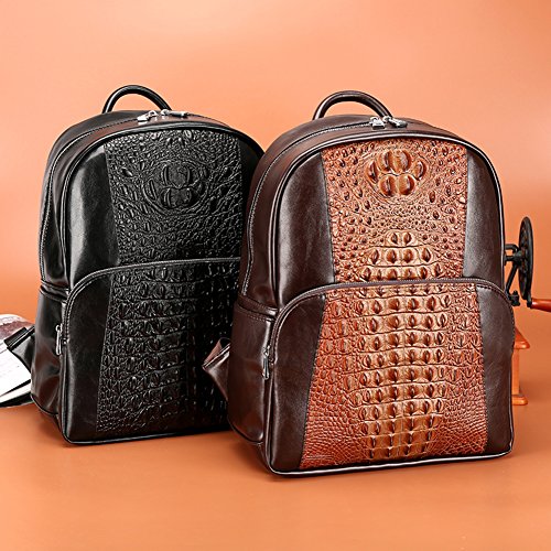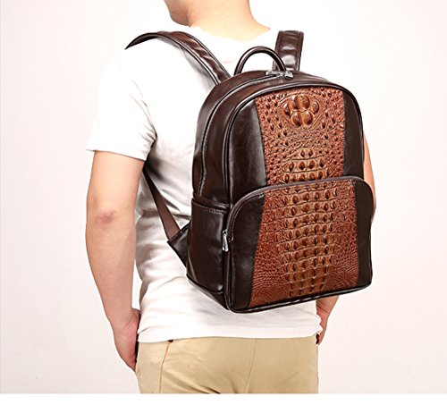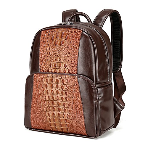 -. Title : FULIER Men Leather Backpack Fashion Crocodile Pattern Laptop Bag Casual Daypack