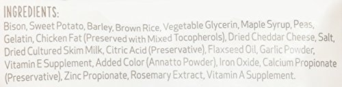 -. Feature : Dual-Flavored, soft and chewy treats that partner premium bison and savory cheddar cheese / Fortified with omega 3 fatty acids and vitamins a & e for added health benefits