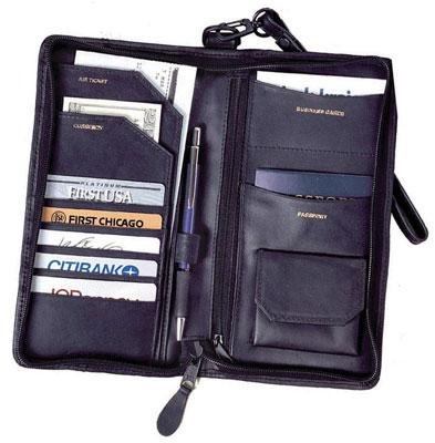 -. Feature : Flap over pocket on front / Detachable wrist strap / Airline ticket slot; Currency pocket; Passport slot / 5 Card slots; Business card pocket ;Zippered P.R.Ivacy pocket; Flap coin pouch
