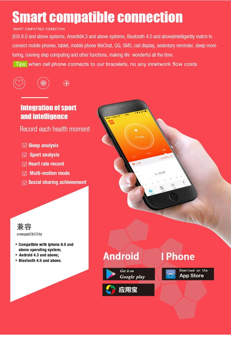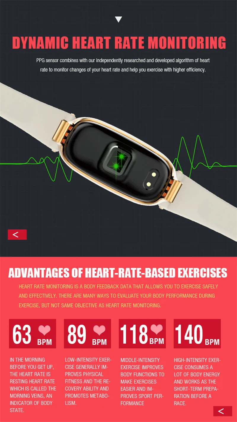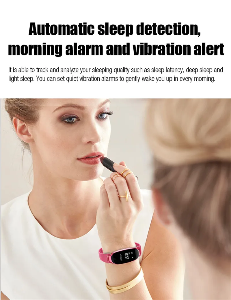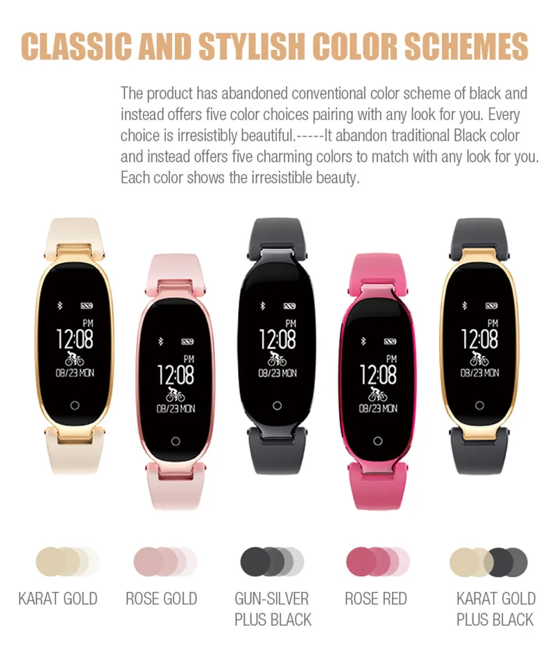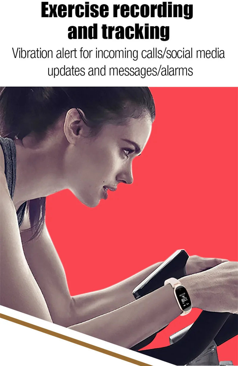 Feature:Fitness Tracker,Sleep Tracker,Message Reminder,Call Reminder,Auto Date,Complete Calendar,Heart Rate Monitor,Water Resistant,Alarm,Bluetooth,Week Display