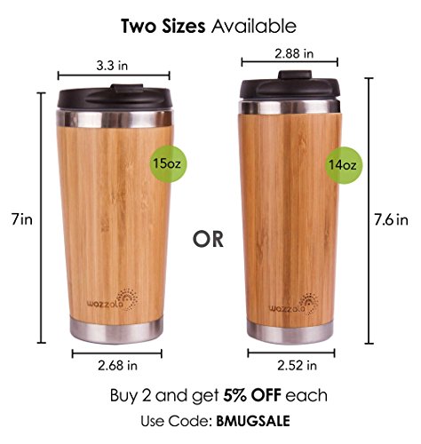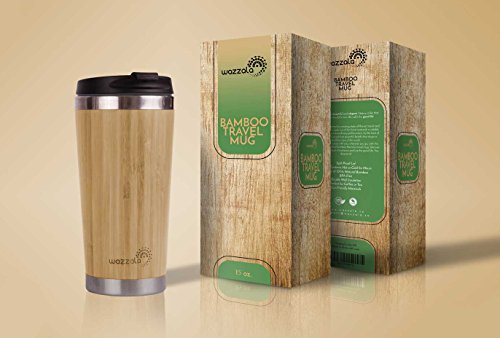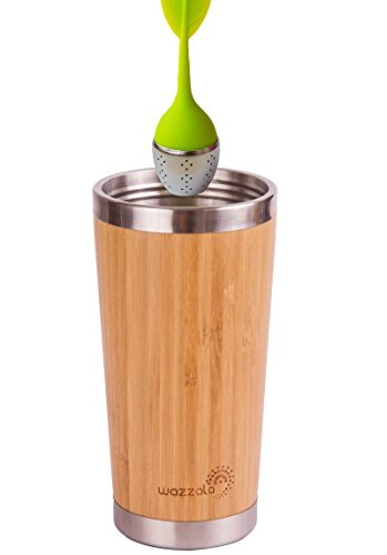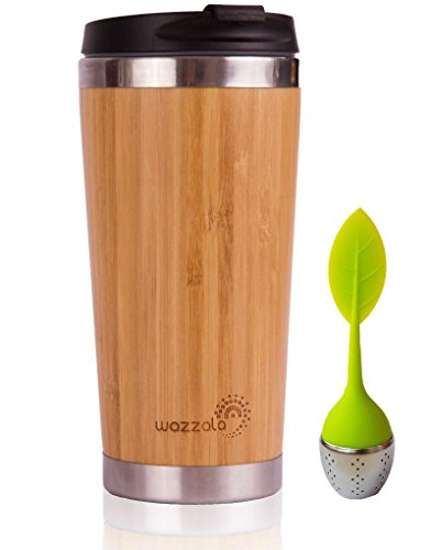 Elegant Reusable Bamboo Eco Travel Mug (Thermos) for Coffee or Tea | Splash-Proof, Easy to Clean Lid | Silicone Tea Infuser Included (15 Oz)