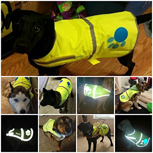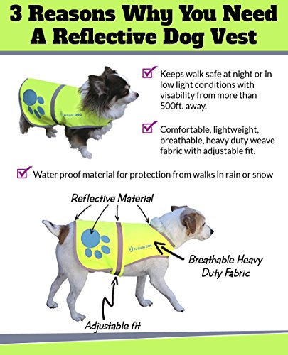 -. Feature : DOG SAFETY VEST - Protect your pet with our reflective dog gear - high visibility during the day (dog hunting coat) or night (car head lights) and enjoy peace of mind. / DOG RAIN VEST - No more wet dog & "wet smell" for those necessary walks with your dog in the rain or snow, eliminating the need for extra baths or sick dogs. / ADJUSTABLE & LIGHTWEIGHT - PLEASE MEASURE YOUR Dog for LENGTH. It may fit more like a vest depending on the length of your dog. Our small dog visibility vest fits dogs from 11-25 lbs. Length from neck to bottom 12 inches-chest fits 25-29 inches in diameter. Adjustable velcro strap for perfect fit so you do not have to worry about the reflective dog jacket being too tight or too loose. / SUGGESTED DOG BREEDS FOR SIZING: Shih Tzu, Jack Russell, Dachshund, Shelties, Miniature Schnauzer, Pug, Boston Terrier, French Bulldog / HEAVY DUTY QUALITY MATERIALS - Extra Durable 300D Oxford Weave Fabric with 3M reflective tape, ideal material for our reflective dog vest so this will be the only vest you will need to purchase due to its long term durability.