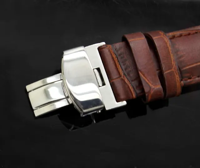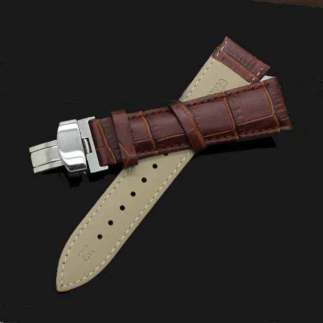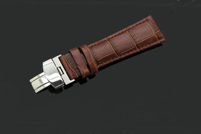 높은 품질 브라운 18 미리메터 20 미리메터 22 미리메터 24 미리메터 소프트 Sweatband 정품 가죽 스트랩 스틸 나비 실버 버클 시계 밴드