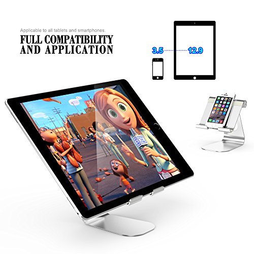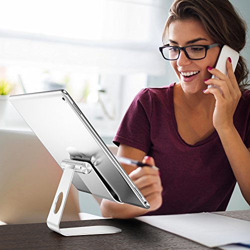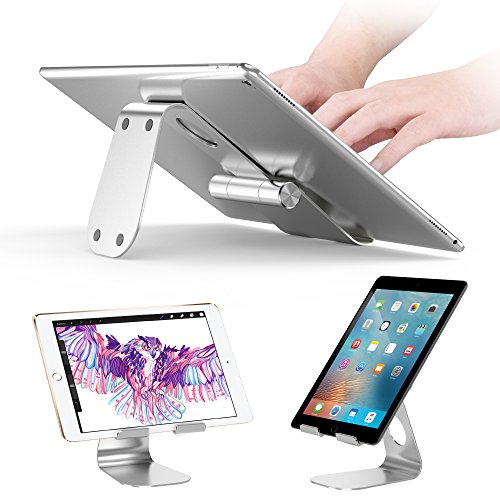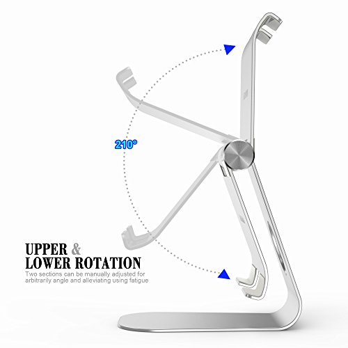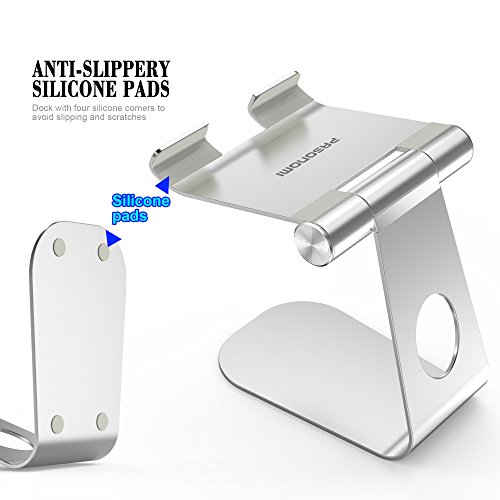 Adjustable Tablet Stand, Pasonomi iPad Stand, Aluminum Desktop Stand Holder for iPad Pro / iPad Air 2 3 4/ iPad mini , Samsung Tab, Kindle, Nexus, Surface, iPhone, Nintendo Switch and more - Silver