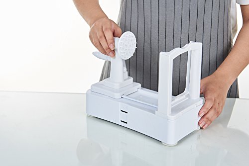 HIGHLY VERSATILE: Perfect for making quick low carb, healthy veggie noodles from firm fruits/veggies like apple, onion, carrot, zucchini, cucumber, cabbage, beet, turnip, rutabaga, radish, potato, sweet potato, squash & more. Works great even for long & wide vegs (max 10 inches long, 7 inches wide). It's the quickest way for you to replace carb-loaded, calorie-loaded meals with numerous healthy veggie alternatives, thereby saving you valuable time, money & improving your health all the while.