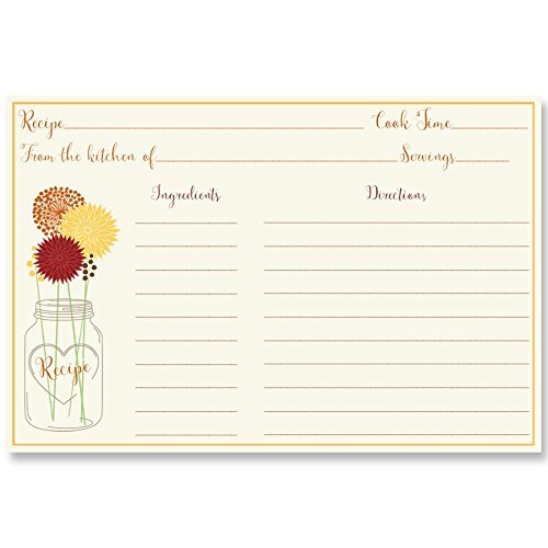 Recipe Cards, Double Sided, 4 x 6, Autumn, Mason Jar Bridal Shower Recipe Cards, Red, Orange, Yellow, Wedding, Set of 24 Printed Cards,, Mason Jar Autumn Breeze