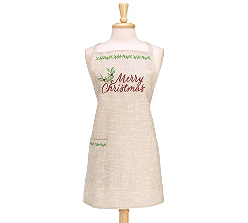 Burton and Burton Handmade Linen Holiday Apron With Pocket, Merry Christmas