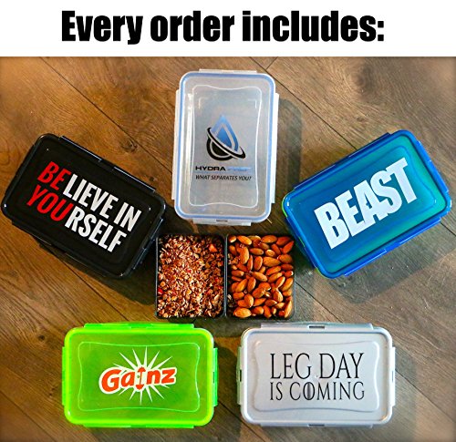- ✓ FRESH COLORS & CREATIVE LOGOS - REINVENTING MEAL PREP CONTAINERS, 5 PACK MEAL PREP CONTAINERS