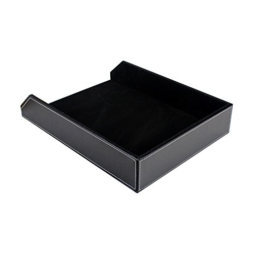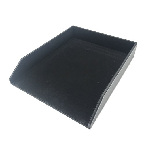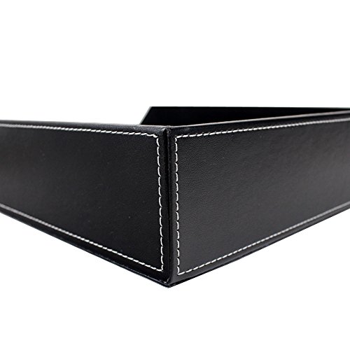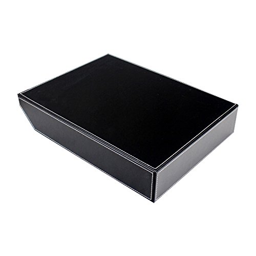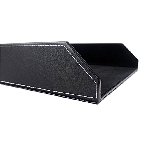 PU Leather Stackable Office File Document Tray Case Rack Desk File Document Organizer Holder (Black)