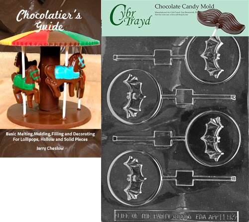 Cybrtrayd "Bat on Moon Lolly" Halloween Chocolate Candy Mold with Chocolatier's Guide