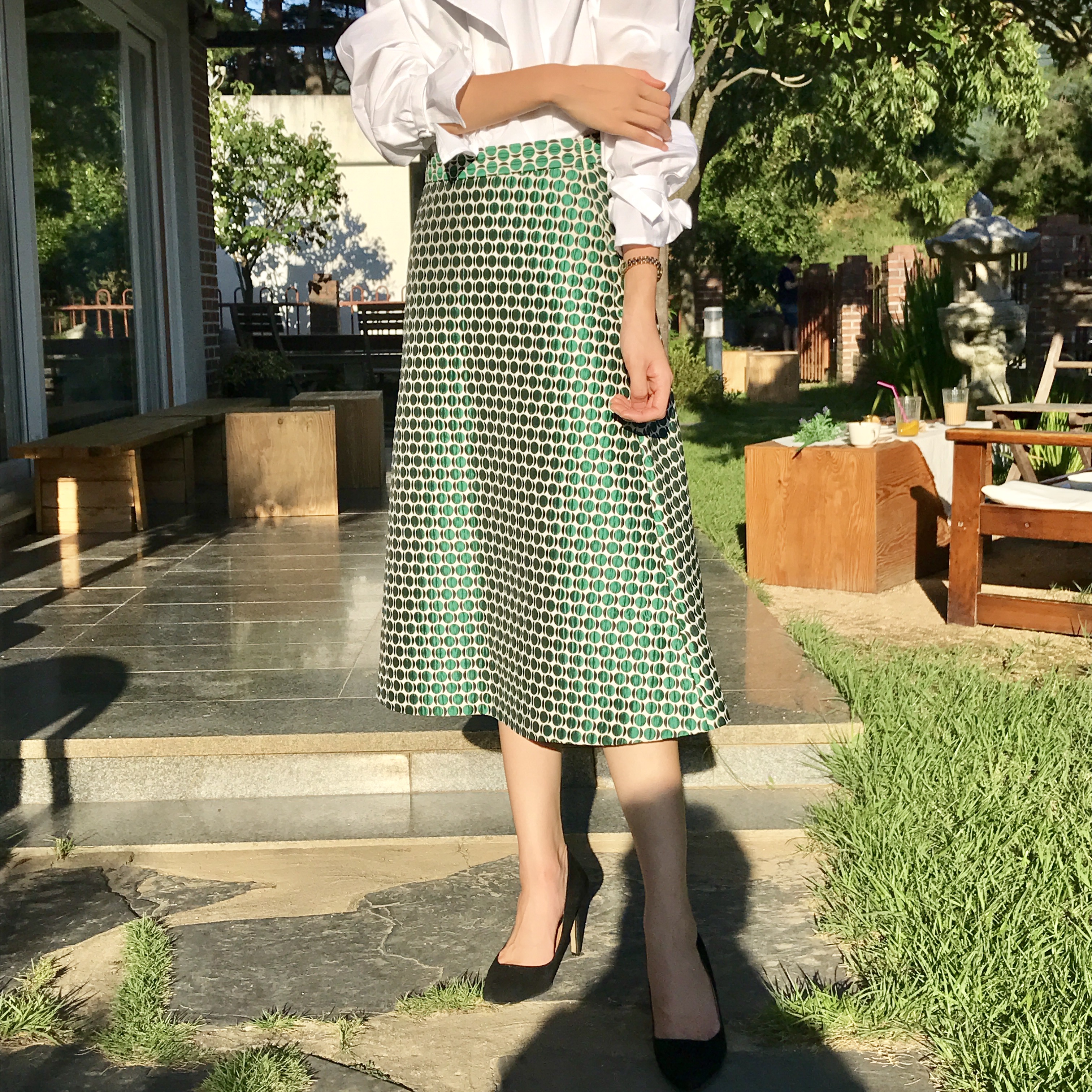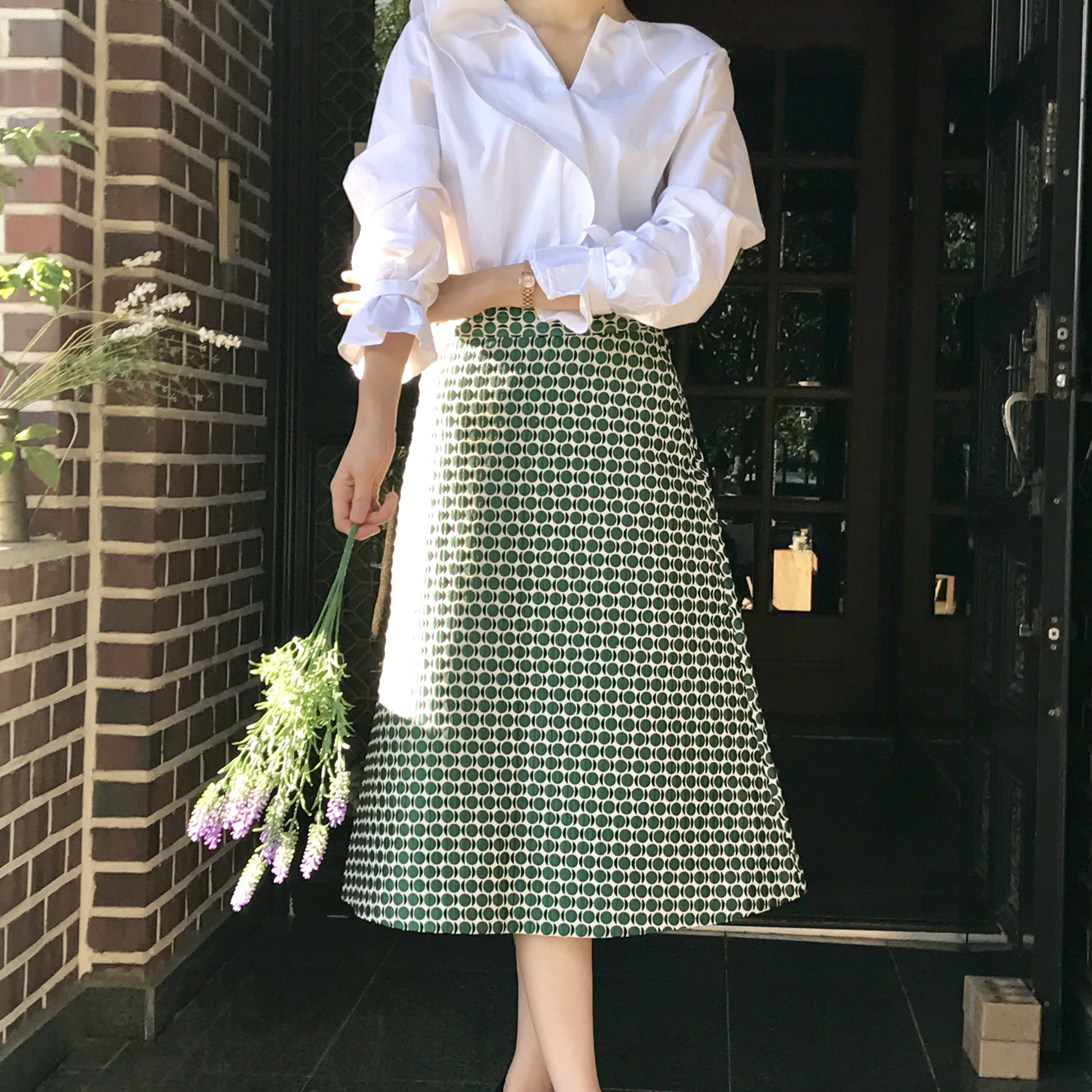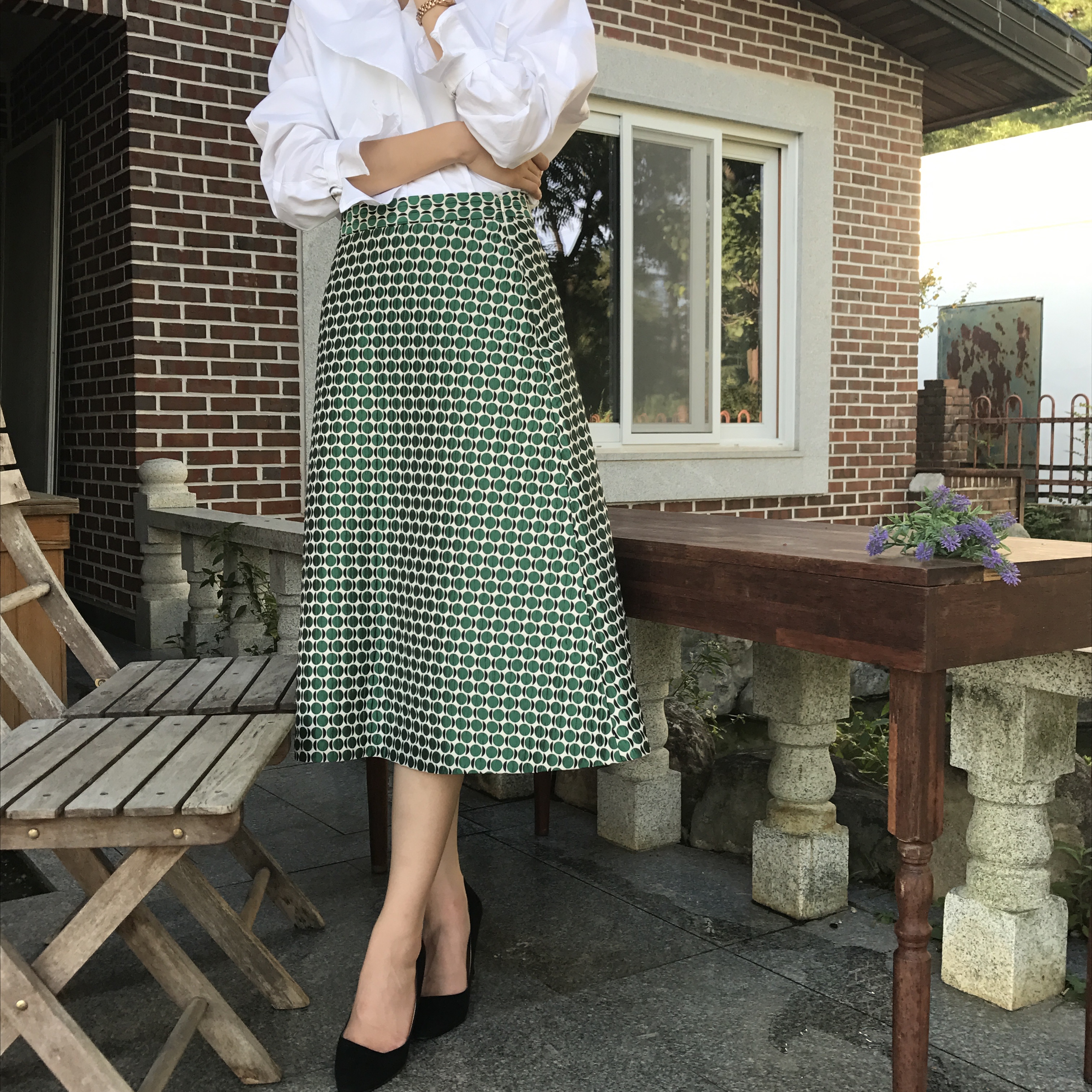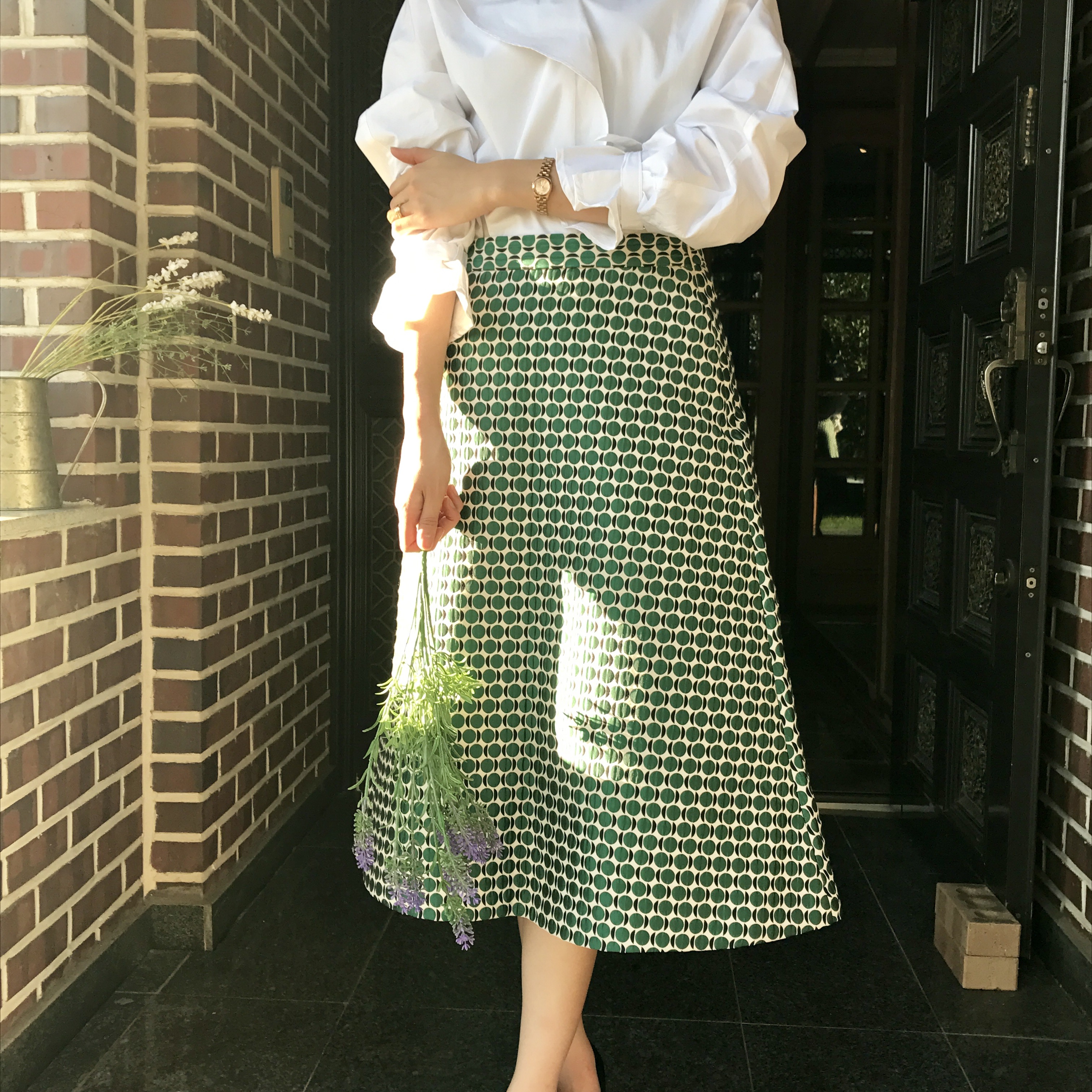 A line autumn dot long skirt 2color lovely date look 20s woman casual
