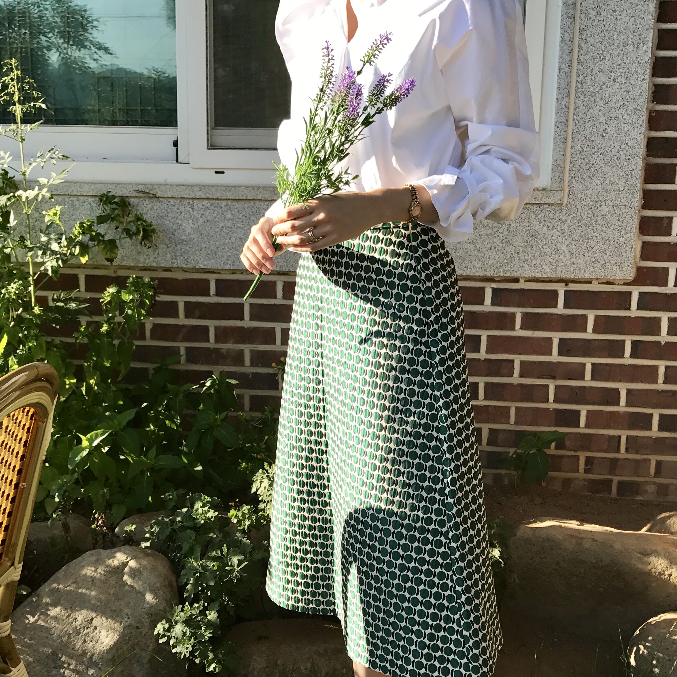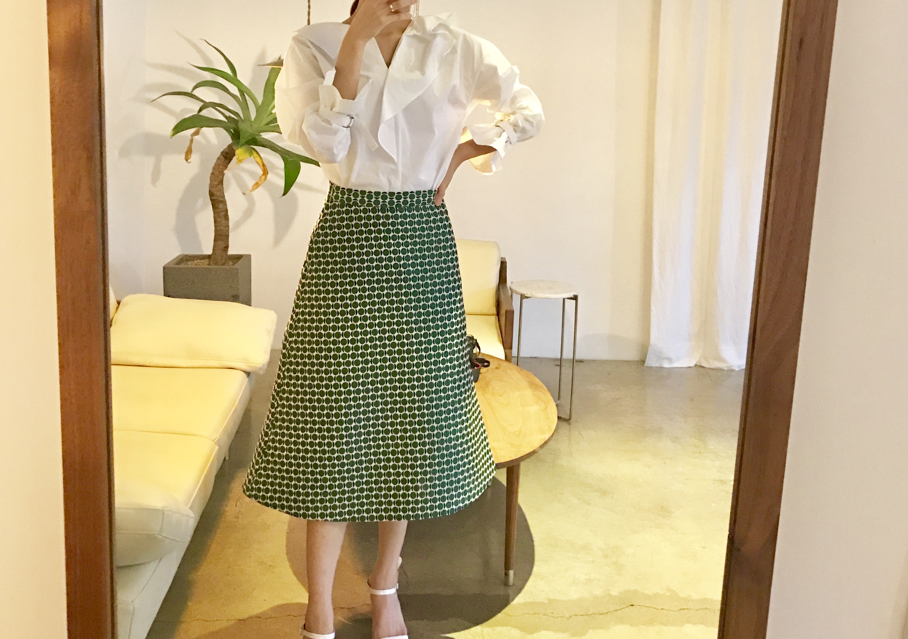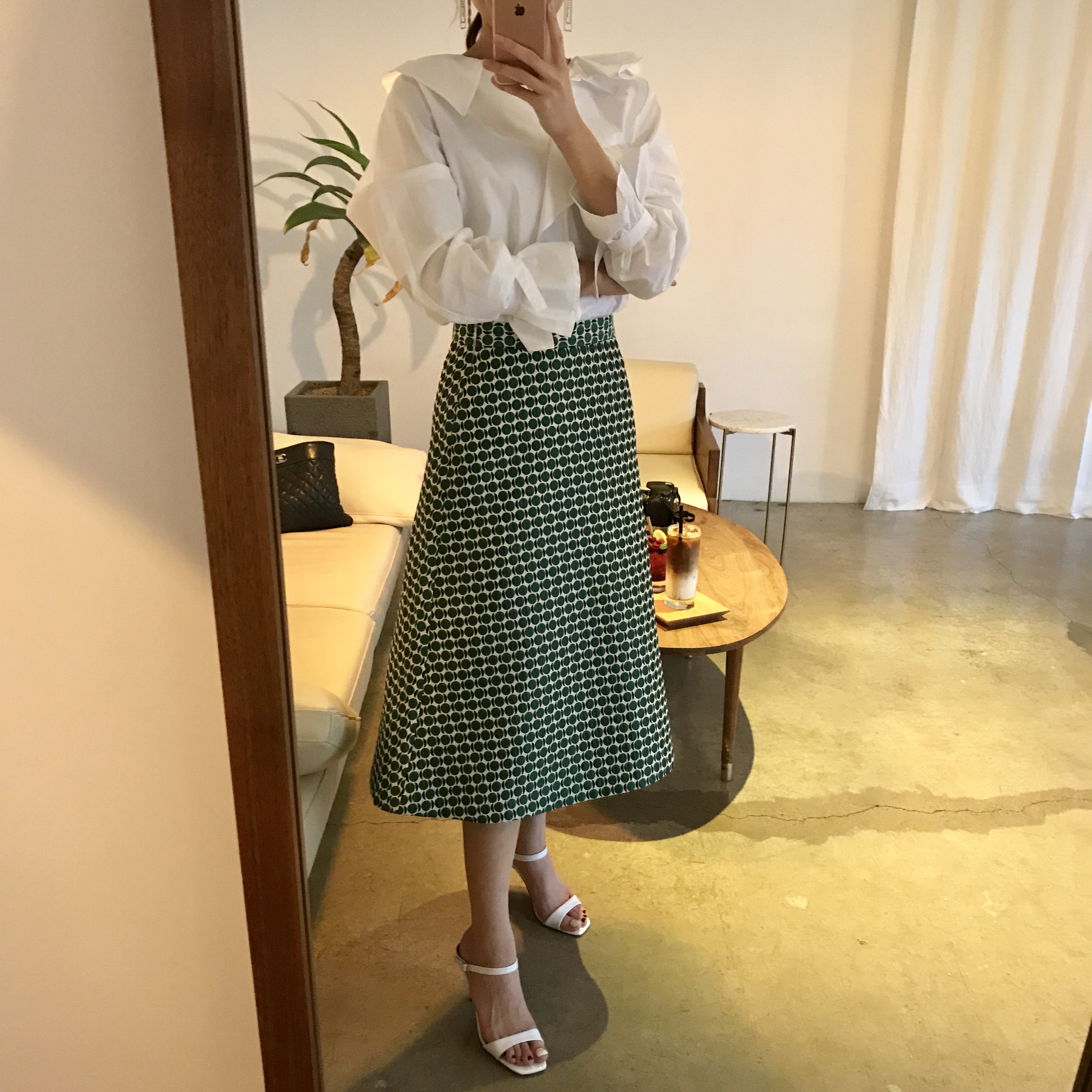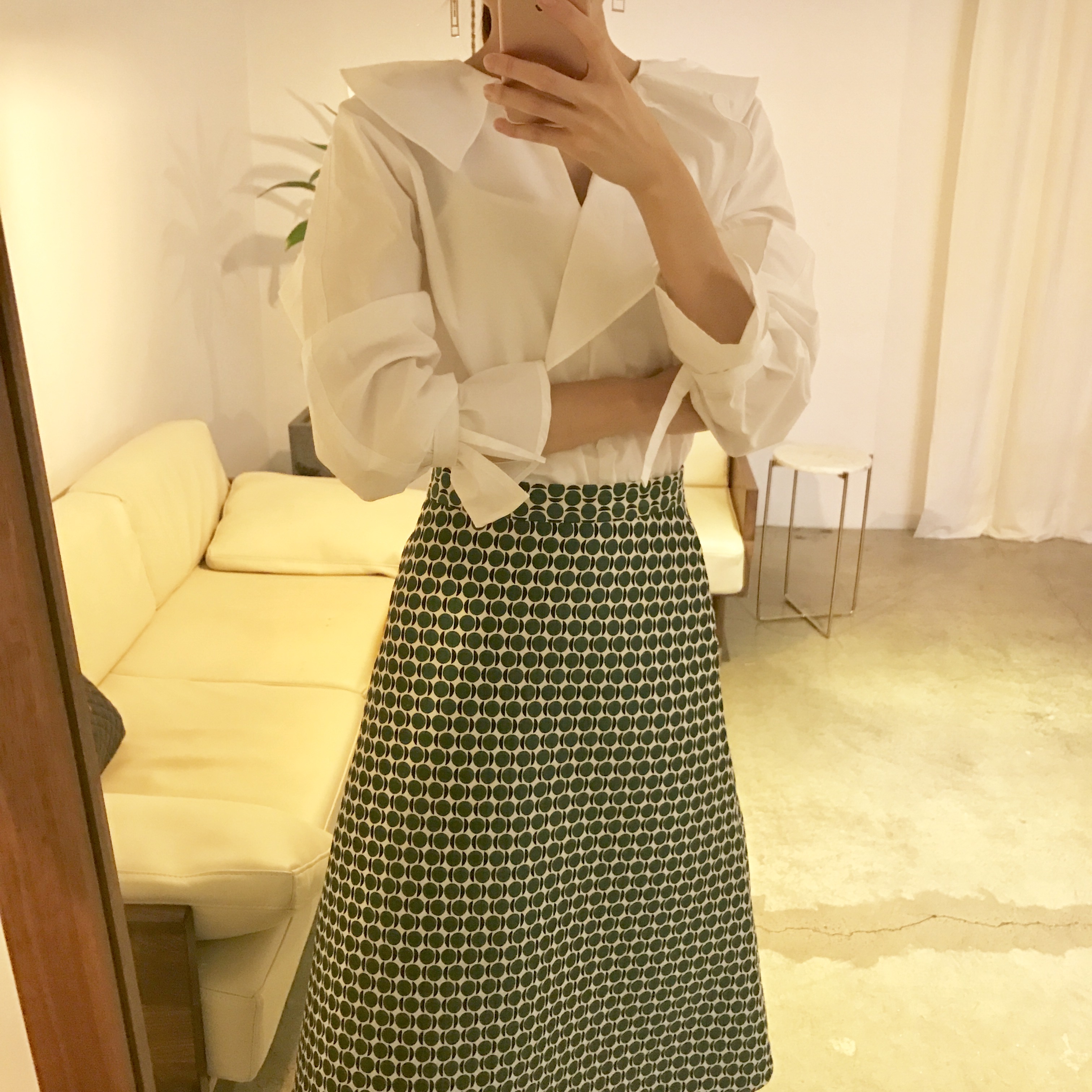A line autumn dot long skirt 2color lovely date look 20s woman casual