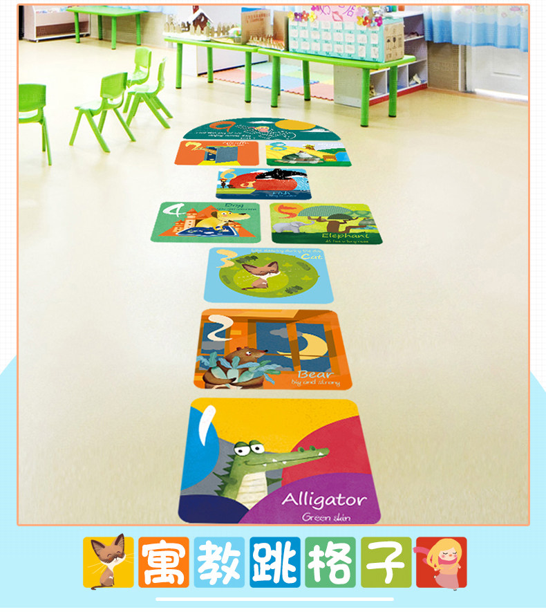 幼儿园教室装饰品地板贴纸卡通动物游戏跳格子地贴儿童房间墙贴画
