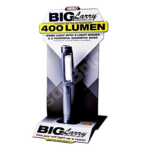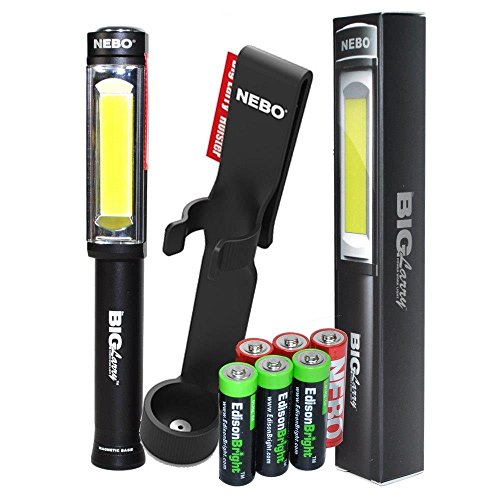 Nebo 6306 Big Larry Black 400 lumen Flashlight COB LED Magnetic Worklight, 6393 holster with 3 X EdisonBright AA Alkaline batteries bundle