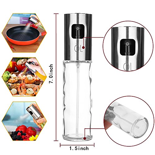 PROEXME® Professional Olive Oil Sprayer Dispenser for BBQ/Cooking/Vinegar Glass Bottle Proof Drops Spice Jar Seasoning Kitchenware Tools - Specifications Material: Stainless Steel and Glass Size:?L1.6 inch*W6.9 inch? Volume: 100ml/ 3.4oz Package?Include:1 x oil sprayer ? ? ? ? ? ? ? ? ? ? ? ? ? ? ? ?1 x Collapsible?Silicone Funnel ? HIGH QUALITY DESIGN Unlike other vinegar bottles oil sprayers,?PROEXME sprayer?are BPA FREE made from glass with stainless steel! Its perfect for spraying ingredients instead of using a brushes when roasting, sauteing, baking, cooking ? SIMPLE TO USE For the first time just a FEW CLICKS UPON THE PUMP and begin to COOK. The pumping mechanism on the vinegar and oil sprayer is easy to use, with the ample capacity of 3.5 fl oz holding everything from soy sauce, balsamic vinegar, olive,and canola oil. ? MULTI-PURPOSE USE Add your favorite oil to the sprayer, press the control button to produce a fine mist, more uniform in spraying and control the amount of oil per time used in cooking, also available for vinegar, lemon, lime juice, Sherry or Marsala wine, water, soy sauce and other liquids. - WARM TIPS 1.We suggest you clean it before filling something. 2.When you use it, please try to pump the sprayer for more times until it is works well. 3.The better usage is tilt bottle and press. 4.Maybe there is some residual on head after using, please prepare tissue or cleaning cloth to wipe. Make your life more healthier, use PROEXME® professional oil sprayer encourage your familes to use healthier dressings on their food. Go and get one now! 0 |