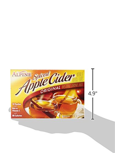 Alpine Spiced Cider Original Apple Flavor Drink Mix is naturally fat free, rich in Vitamin C, naturally caffeine free. It can also be served cold as a punch for your holiday parties. Just add any variety of chilled sparkling water (club soda, plain or flavored) in place of tap water to Alpine Spiced Cider Mix and serve. About Alpine: A unique blend of spices and refreshing apple flavor make Alpine Spiced Apple Cider Mix a favorite for any occasion. Unlike coffee, tea and even cocoa, Alpine Spiced Apple Cider Mix is caffeine-free — and fortified with vitamin C. Serve it hot to take the chill off a cold winter day or try it over ice for a refreshing summertime cooler. This versatile mix is a tasty addition to everything from easy-to-make smoothies, desserts, cocktails and more!Feature