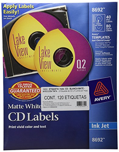 Avery CD Labels, Matte White, 40 Disc Labels and 80 Spine Labels (8692)