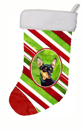 Caroline's Treasures Min Pin Candy Cane Holiday Christmas Stocking, 11 x 18", Multicolor