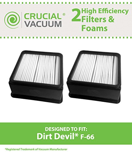 2 Dirt Devil F66 Filter Kits w/ HEPA Filter & Foam Pre-filter; Compare to Dirt Devil Part No. 304708001; Designed & Engineered By Think Crucial