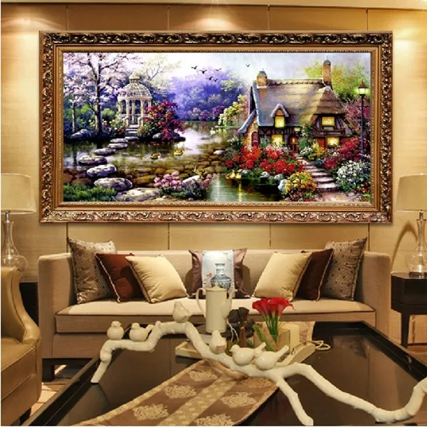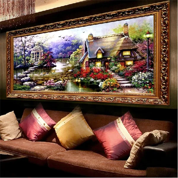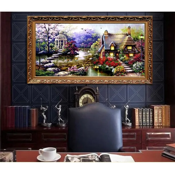 beautiful DIY Handmade Cross Stitch Embroidery Kit Garden Cottage Design Home Decoration 69*37cm Embroidered Cloth