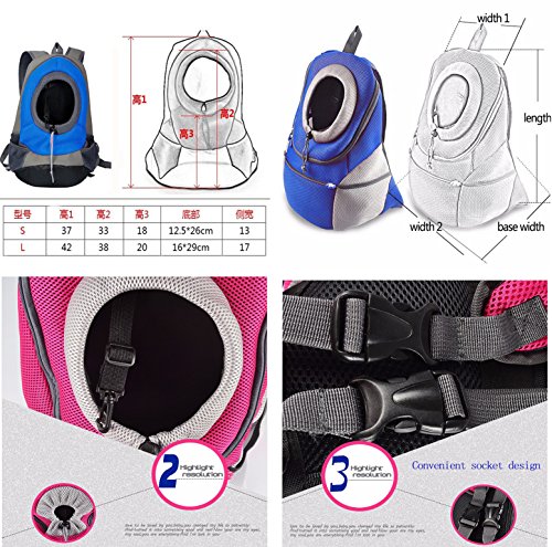 -. Feature : Good pet backpack has adjustable shoulder starps and buckle design,make it sturdy and convenient;A good choice for cat,dog or other pets. / The front hole is adjustable based on the head size of your pet.Made of Oxford cloth and mesh , breathable and comfortable. / Adjustable shoulder strap, can be worn on your front or back.Let your pet enjoy a soothing stroll while keeping your hands free! / Suitable For:Cats,Minlature Pinscher,Chihuahua,Yorkshire Terrier,Pomeranian,Mini poodle,Miniature Schnauzer,Teddy cups,etc. or other similar types of pets. / Size Detail: M:H1*H2*H3=37cm*33cm*18cm/14.5*12.9*7.0 inch,bottom 12.5*26cm/4.92*10.23 inch L:H1*H2*H3=42cm*38cm*20cm/16.5*14.9*7.8 inch,bottom 16*29cm/6.29*11.41 inch