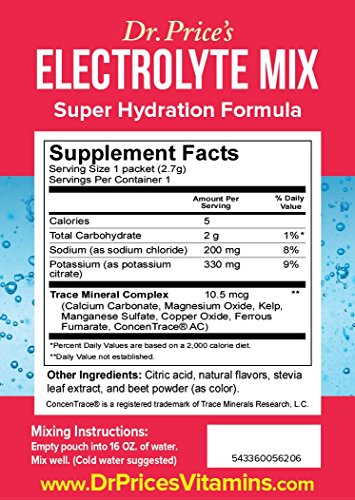 -. Title : Electrolyte Mix: Super Hydration Formula + Trace Minerals | Raspberry Flavor (30 powder packets) Drink Mix | Dr. P.R.Ice's Vitamins