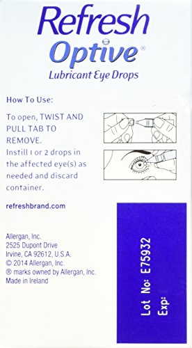-. Feature : Optive lubricant eye drops for the temporary relief of burning, irritation, and discomfort due to dryness of the eye / Optive Lubricant Eye Drops, Sensitive Preservative Free, Single used as a Protectant against further irritation / It is advanced Dual Action Formula That Lubricates Dry Eyes