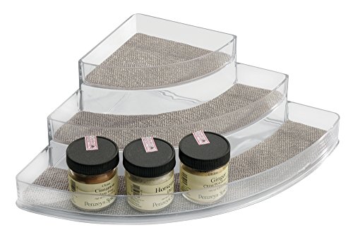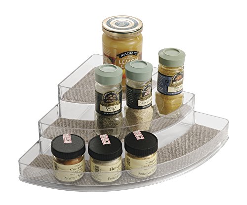 -. Title : mDesign Spice Rack, Organizer for Kitchen Pantry, Cabinet, Countertops - Corner, Metallic/Clear