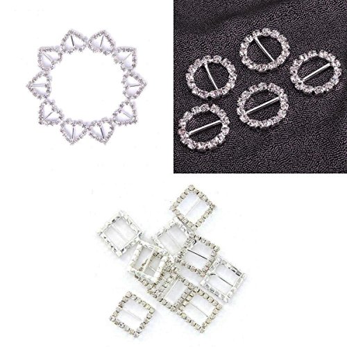 Tinksky Ribbon Buckle Sliders for DIY Craft Wedding Card Invitation Heart Round Square Shape,Pack of 30(Silver)