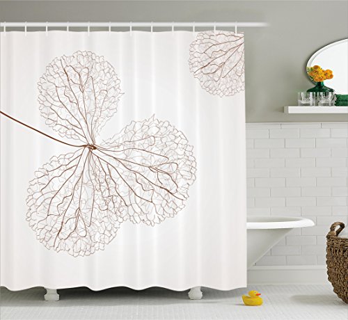 Flower Decor Shower Curtain by Ambesonne, Abstract Cotton Floral Design with Veins Natural Botanic Plants Image Art, Fabric Bathroom Decor Set with Hooks, 70 Inches, White and Brown