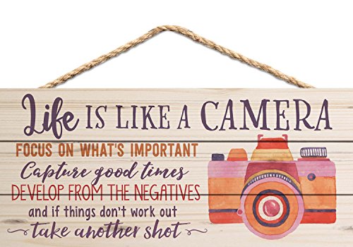 Life is Like a Camera Focus on What's Important 5 x 10 Wood Plank Design Hanging Sign