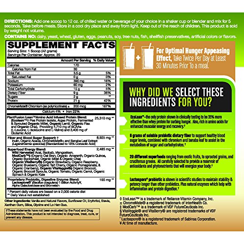 PlantFusion Lean, Clinically Tested Weight Loss Protein Powder, Vanilla Bean, No Soy or Rice, 21g Protein, 20 servings, 29.6oz Tub