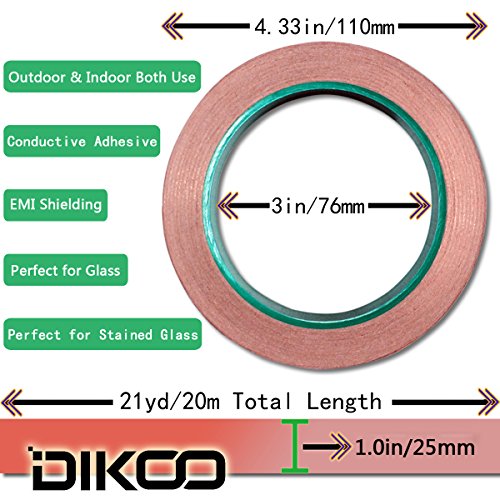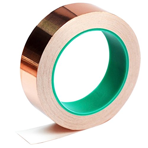 Double-sided Copper Foil Conductive Adhesive - they are made of copper; Each copper foil tape is 1/ 4 inch in width, 21.8 yards in length