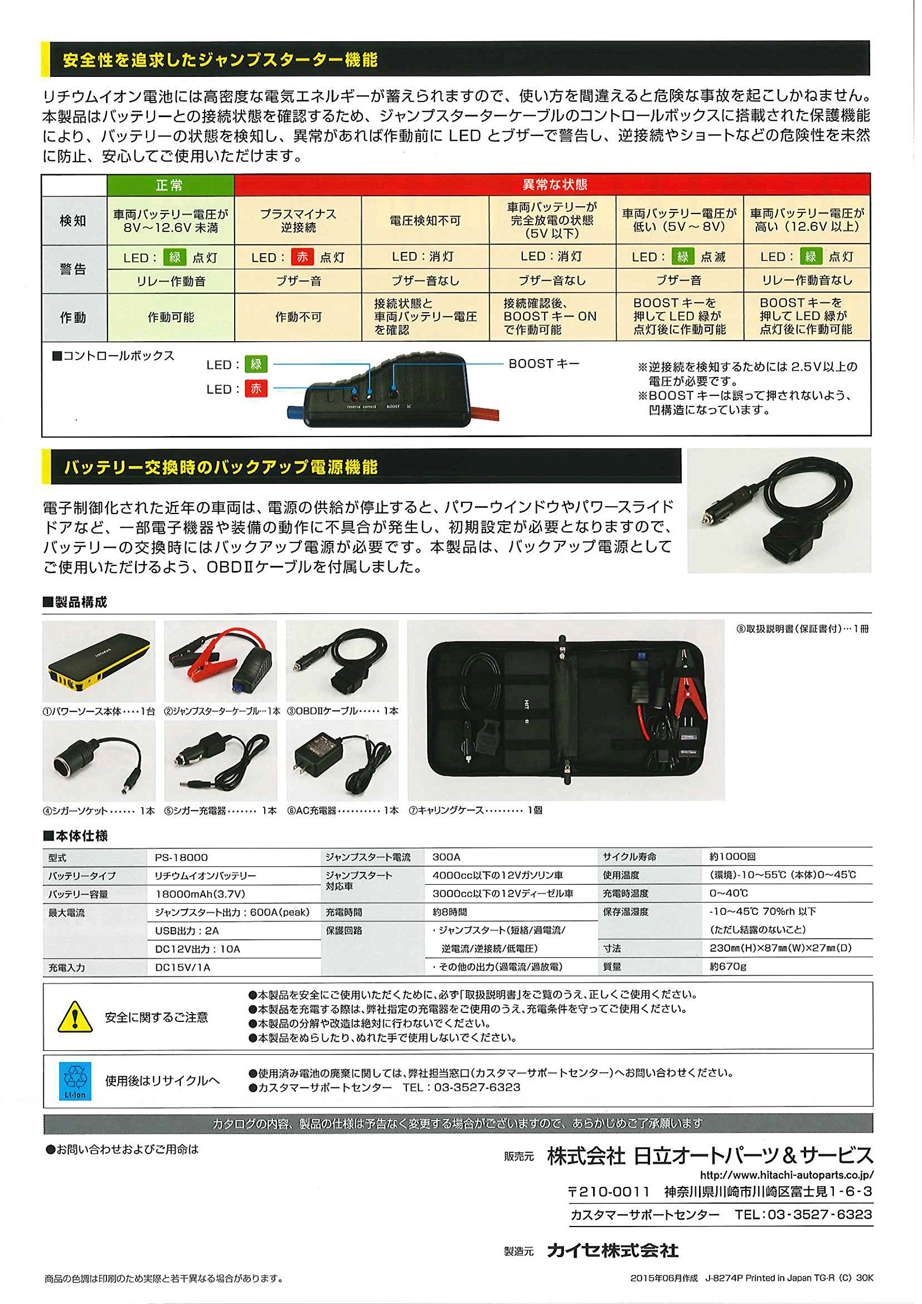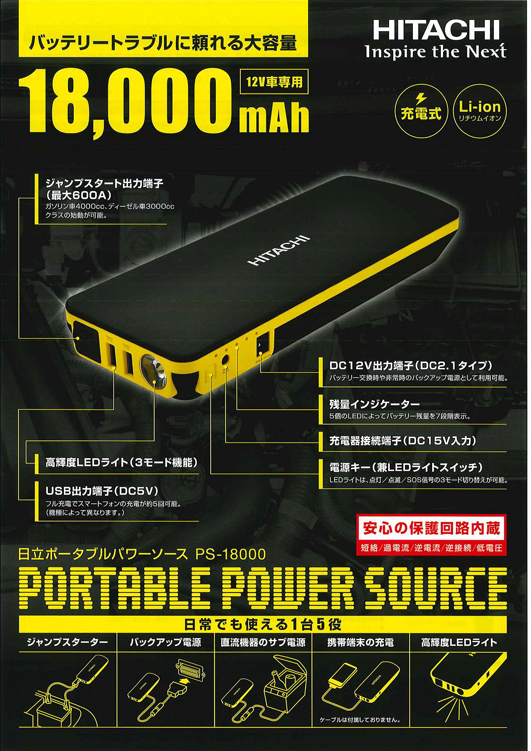 [HITACHI] Hitachi portable power source 18000mAh [12V vehicles only] PS-18000