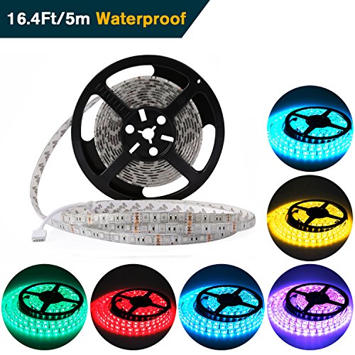 Led Strip Lights SMD5050 RGB Led Light Strips Multi-colors Led Strip Lighting Waterproof Led Ribbon Color Changing Strip Lights 16.4Ft/5m DIY Decoration for Holiday Party Bar Kitchen Ceiling