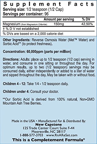 -. Binding : Health and Beauty -. Brand : RnA ReSet -. EAN : 0866486000015 -. Feature : LIQUID MAGNESIUM SUPPLEMENT - Just add to water, juice or a smoothie! / CONCENTRATED! 60,000ppm concentration of 99.99% pure elemental magnesium / PROMOTES strong muscles and bones, cardiovascular health and nervous system function / RECOMMENDED by doctors and naturopaths for its quality and bio-availability. / HIGH ABSORPTION: Pico-ionic form of magnesium in ReMag means it is fully absorbed at the cellular level. -. IsAdultProduct : 0 -. Label : New Capstone -. Manufacturer : New Capstone -. MPN : remag -. PackageQuantity : 1 -. PartNumber : remag -. ProductGroup : Health and Beauty -. ProductTypeName : HEALTH_PERSONAL_CARE -. Publisher : New Capstone -. Studio : New Capstone -. Title : ReMag Pico-Ionic Liquid Magnesium by RnA ReSet. Formulated by Dr. Carolyn Dean for Complete Absorption. Experience The Magnesium Miracle. 8 fl oz -. UPC : 866486000015
